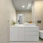 ويشتمل الحمام أيضًا على مجفف الشعر وملاءات الحمام والمناشف.